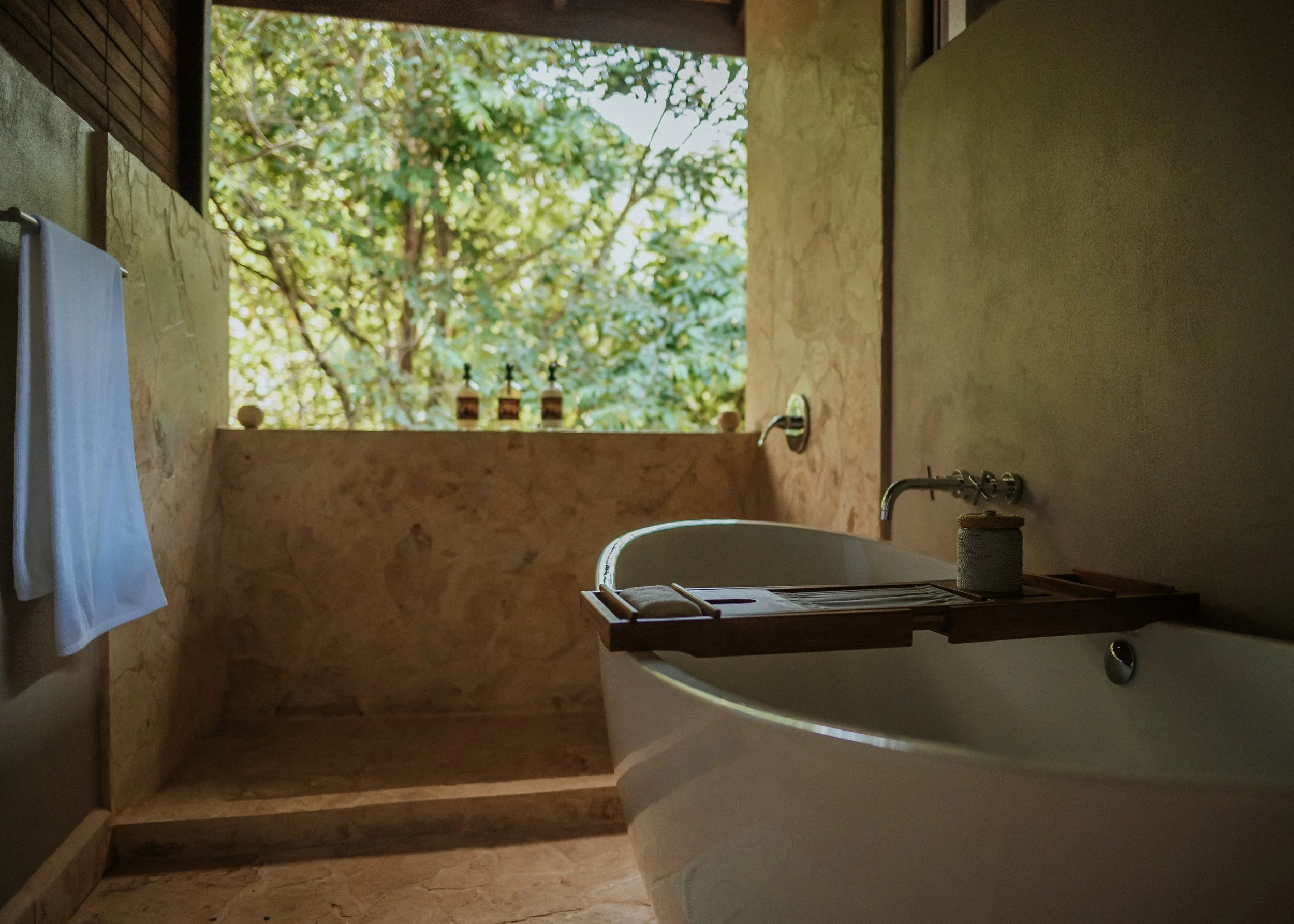 Enjoy a beautiful outdoor patio surrounded by jungle and a shower with rainforest views.